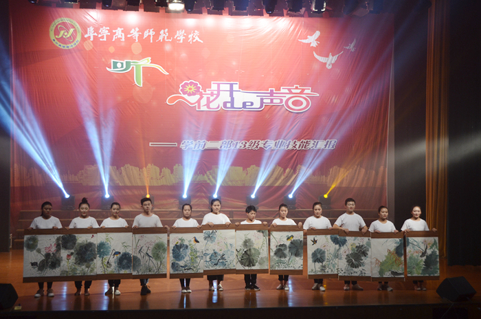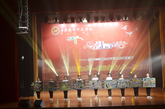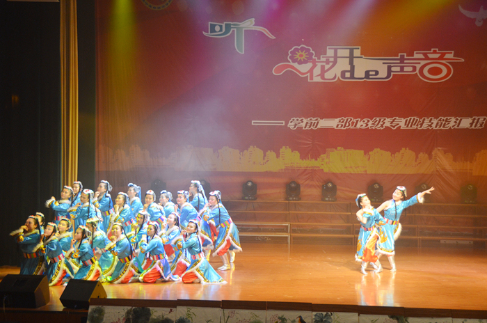 若想成为一名优秀的幼儿教师,绘画是必备的专业技能,接下来的是刘姝玲老师指导的绘画作品展示。几个同学分工合作组成了一幅十米长的的国画长卷,让人眼前一亮。可见,从构思、酝酿、到起稿、画稿,其中浸润了师生的多少心血汗水。同样,同学们的彩铅画和儿童话更让人目不转睛。流畅细腻的笔触,熟练的画工,都令人赞叹。接着,是曾卫东老师指导的大气恢弘的藏舞《扎西德勒》。传统的藏族服饰、充满民族风情的音乐伴奏、绚丽的舞台灯光,让人仿佛置身高原,感受了一番藏族同胞的豪迈大气、热情好客,也深深感受了民族团结和友爱的重要。最后,由1303、1305全体同学带来的大合唱《校园的早晨》、《美丽中国梦》,由朱明老师指导,更为汇报添上了一笔热烈活力的色彩。从他们的歌声中,同学们仿佛听到了幼师梦是我们的梦,是每一个幼专学子的青春梦,而中国梦是幸福中国人共同的憧憬,是中国人心中最美的愿景。