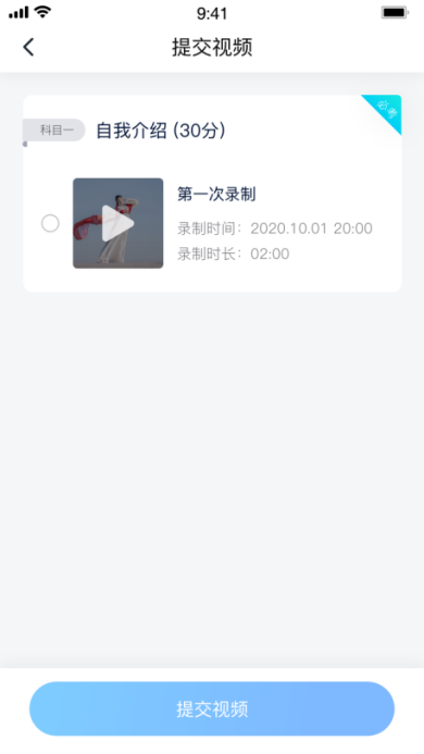面试科目录制完毕后,可查看视频,选择最合适的1个视频,提交上传为考试视频。