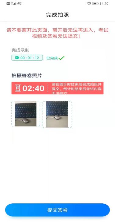 拍照完成后需要在规定时间点击“提交答卷”上传。