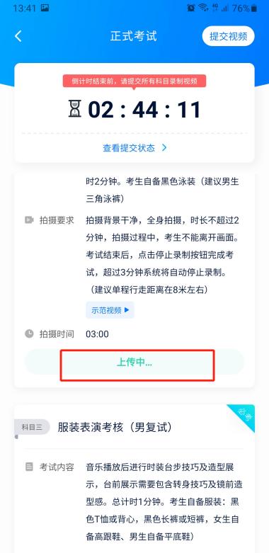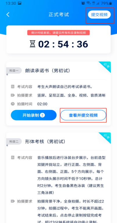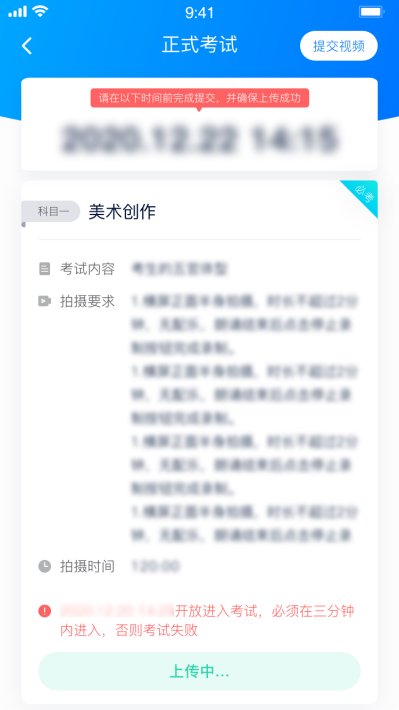 (1)考生务必在考试时间截止前提交该专业所有科目录制的视频/图片,如未在考试时间截止前提交视频/图片,则无法再提交。