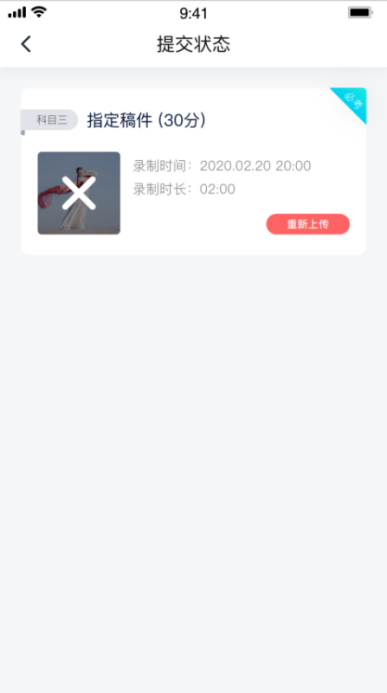 (3)考试视频和作品图片全部提交后,请考生务必确认上传状态,不要退出小艺帮 APP。如果视频上传失败,我们会提醒您【重新上传】,请留意视频上传页或【考试】列表页底部,点击【重新提交】即可。您可以切换 Wi-Fi 和 4G 网络进行尝试。