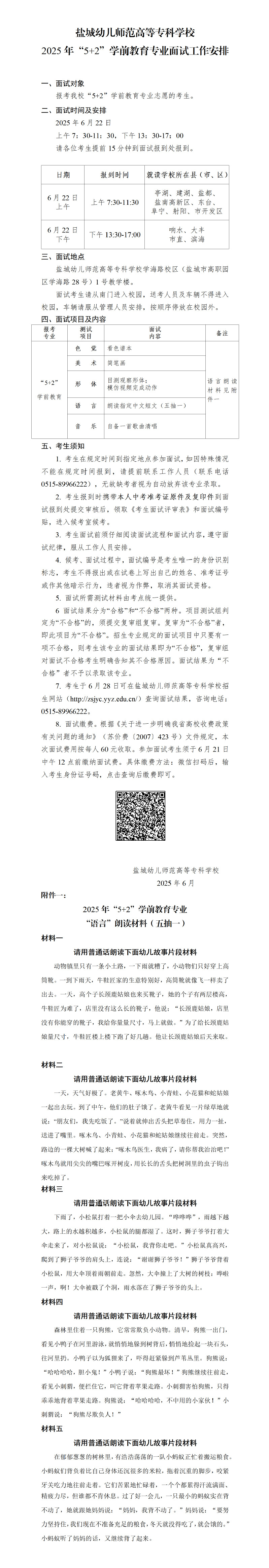 【中考招生】2025年“5+2”学前教育专业面试工作安排